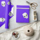Papier à enveloppement blanc pour squelette d'Halloween. Papier cadeau Halloween. Papier d'enveloppement d'Halloween. Papier d'artisanat squelette. Arrière - plan Violet Avec Skeleton Blanc Tête Papier D'Artisanat. Des Têtes De Squelette Blanche Qui Flottent Sur Un Arrière - plan Violet Vibrant. Papier d'artisanat d'Halloween Squelette.