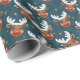 Papier Cadeau Sketchy Winking Reindeer Face Teal Pattern