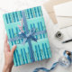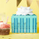 Skis bleus sur la neige avec papier d'emballage de Noël arrière - plan bleu.