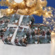This festive design captures the joyful spirit of the holiday season, featuring an adorable dogs.Nestled in a winter wonderland, complete with a decorated Christmas tree, and beautifully wrapped presents. Snowflakes gently fall, adding a magical touch to the scene, while the vibrant colors of the holiday decorations create a warm and cheerful atmosphere.