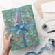 This wrapping paper is a teal tornado of tail-wagging joy—dogs in scarves and Santa hats zoom past candy canes, sleighs, and pinecones like they’re late for the reindeer auditions, making every gift look like it was wrapped by the elves’ favorite golden retriever.