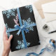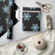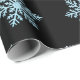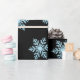 Beautiful wrapping paper featuring blue snowflakes on black background.