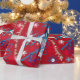 Snowflake greetings in red, blue and white. May you have cozy and warm holiday time ! Cheers !