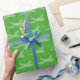 Beaucoup de beaux flocons de neige s'unissent à partir d'un avion de ligne sur vert avec plus de flocons bleus.