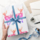 Silhouette de cerf rose et jaune et flocons de neige, emballage cadeau spécial Nouvel An et Noël.