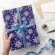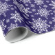Papier d'emballage motif de Snowflakes. Des flocons de neige blancs sur du papier d'emballage bleu foncé. Un motif sans faille de flocons de neige dans différents modèles et formes font de ce papier d'emballage intemporel, classique et traditionnel. Un design hivernal élégant, minimaliste et simple. Les flocons de neige dans une illustration adaptée à la saison des Fêtes, aux événements festifs et à Noël. Ce papier d'emballage s'adapte à la plupart des occasions pendant la saison hivernale, à la fois Noël et les anniversaires année après année. Disponible en différentes tailles et combinaisons de couleurs.