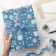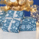 Papier Cadeau Snowflakes répétant le motif blanc bleu