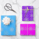 Papier Cadeau Snowflakes sur Bleu, Violet & Pink Feuille Set de