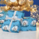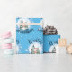 Un mignon bonhomme de neige dans un globe de neige avec des flocons de neige sur un arrière - plan bleu aqua. La couleur Arrière - plan peut être modifiée.