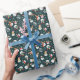 Papier d'emballage cadeau personnalisé de noël, auquel vous pouvez ajouter une répétition à ou à partir du message. Le design a un motif de vacances festives de neigeurs d'hiver fantaisistes.