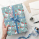 Joli papier d'emballage de bonhomme de neige personnalisé avec le nom d'un enfant ou tout texte personnalisé. Un superbe emballage cadeau pour Noël ou les Fêtes, avec des illustrations d'hiver et des animaux avec un arrière - plan couleur neutre pour le genre dans les tons verts.