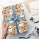 De mignons bonhomme de neige et rennes motif en blanc vert rouge pour un papier d'emballage de style mignon pour les cadeaux pour enfants. Whimsical et mignon.