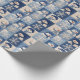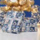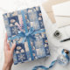 An enchanting pattern filled with delightful snowmen and sparkling snowflakes, beautifully set against a blue and white quilt background