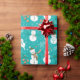 Papier Cadeau Snowmen Snowflakes Holly Feuilles Green Christmas