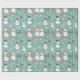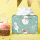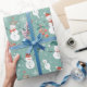 Papier Cadeau Snowmen Snowflakes Holly Feuilles Green Christmas