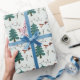 Papier Cadeau Snowmen vert et arbres de Noël Noël