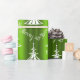 Ce papier d'emballage festif, vert et blanc de Noël présente un motif moderne d'arbres blancs de Noël, avec les mots 'Be Merry' éparpillés sur un arrière - plan vert clair et coloré.