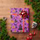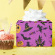 Papier d'emballage violet Halloween avec motif de chauves-souris, sorcières, citrouilles et beaucoup d'autres choses éffrayantes! Coloré et sorcier, parfait pour la saison la plus effrayante !
