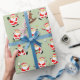 Décor de fête ou d'enveloppement de Noël sur le thème du sport avec Père Noël jouant à 25 sports différents.