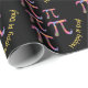 Fleurs illustrées colorées uniques nichées dans un symbole Pi modelé sur un arrière - plan noir. Mignonne enveloppement cadeau à thème mathématique.