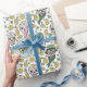 Ce papier d'emballage "Happy St. Patrick's Day" à la main unique présente un motif amusant d'un couple de crânes à sucre irlandais portant des casquettes et des foulards irlandais, entouré de trèfles et de pièces d'or shamrocks. Personnalisez avec votre nom de famille.