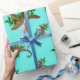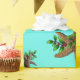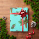Papier d'emballage de Noël de qualité avec étoiles de mer et des chevaux de mer design. Le saint vert aux baies rouges orne les étoiles de mer brunes et les petits chevaux de mer. La couleur Arrière - plan est turquoise tropicale, ou choisissez une autre couleur.
