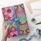 PAPIER CADEAU STARS ABSTRAITS DE FUCHSIA ROUGE ROUGE AVEC GEMS