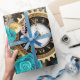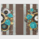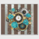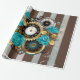 Papier Cadeau Steampunk Clock and Turquoise Roses on Striped