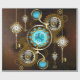 Turquoise lenses with antique watch with brass gears and golden keys on rusty, brown background. Steampunk style.