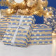 Papier Cadeau Stripes Lignes Coeurs Champaigne Or Bleu Bleu