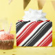 Un papier d'emballage classique à rayures de sucre de canne avec une bande de sucre de canne rouge, blanc et noir.
