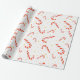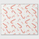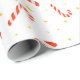 Ce papier d'emballage de Noël amusant et festif présente un arrière - plan blanc avec des sucres de canne rayés rouges et blancs et des étoiles d'or jaune. Un emballage cadeau de Noël parfait pour toute la famille.