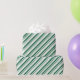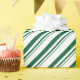 Papier d'emballage à bande de sucre de canne vert et blanc de forêt avec bandes de sucre de canne vert foncé sur la diagonale dans un motif répétitif.
