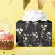 An abstract design featuring delicate summer wildflower bouquets set against a striking black background.
