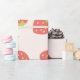 The design features a charming strawberry pattern on a light pink background.
