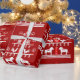 Papier Cadeau Sympa Festif Scandi Rouge Blanc Arbre de Noël
