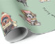 Ce joli papier d'emballage à motifs de Noël présente des chiens illustrés assortis portant des casquettes et des foulards festifs de vacances d'hiver. Il comprend des phrases de Noël (Happy Howlidays, Paw Humbug, Furry and Bright, Yappy Holidays et Père Noël Claws) que vous pouvez laisser tel quel ou customiser avec votre propre nom de famille ou d'autres salutations de vacances. L'arrière - plan est un vert pâle qui s'intègre à n'importe quel décor de Noël.