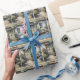 Papier Cadeau Tabby Chat Sur Ancien Banc