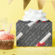 Envelopper le cadeau de diplôme dans un thème de tableau avec des diplômes attachés avec un ruban rouge.