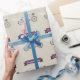 Les mariages sur le thème du vélo sont une tendance amusante dans les mariages thématiques. Sur ce papier d'emballage arrière - plan en faux lin, un vélo en tandem violet symbolise le couple marié qui se promène ensemble. Le siège de la mariée est entouré d'un voile mariage et le siège du marié est entouré d'une cravate avant déliée enroulée autour du guidon. Un bouquet de mariée est placé dans le panier de la moto. Votre propre message se démarque par une bannière violette. Parfait pour envelopper votre cadeau mariage ou fiançailles. Disponible en couleurs alternatives avec une option pour le vélo de mariée et de mariée.