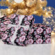 Un bouquet mixte de, violettes, bourgeonnantes, roses et blanches, fleurs sur un feuillage, noir, arrière - plan.
