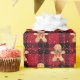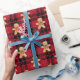 Tartan Red Black Cute Gingerbread Snowfall Christmas Wrapping Paper.