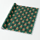 Tartan vert noir mignonne pain d'épices Snowfall Papier d'enveloppement de Noël.