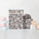 Ce papier d'emballage gothique féminin amusant est dessiné à la main à l'encre noire par Nathalie Portet, avec des crânes fantaisistes et des roses roses et crème rousses et des toiles d'araignée contre un arrière - plan taupe.