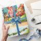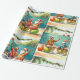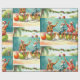 Tennis Christmas Summer with Santa Claus at beach Wrapping Paper