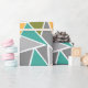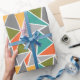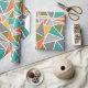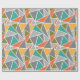 Ce papier d'emballage a un design moderne du milieu du siècle de triangles faisant un sol en terrazzo, en gris, turquoise, orange, or et vert.