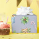 Cet adorable Terrier souhaite à vos amis et à votre famille un joyeux Noël. Un arrière - plan bleu clair avec un Terrier dans une réserve de Noël, et Noël fleurit partout.