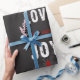 Papier d'emballage moderne noir et blanc de vacances de Noël de manuscrit de joie et d'amour.