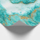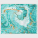 Texture décorative en marbre. Peinture Abstraite. Peintures turquoise et dorée sur un papier blanc. Design inhabituel.