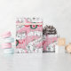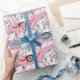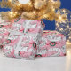 This complex and whimsical repeating pattern captures the joyous, heartwarming celebration of the Whos of Whoville after their Christmas is saved! The design features long, curved dining tables set with tall, whimsical candlesticks, towering piles of food, and elaborate tureens. The tiny Whos are seated and serving, dressed in their holiday best, celebrating beneath a festive green wreath proclaiming "MERRY MERRY." Set against a playful pink background, this detailed print is bursting with the classic charm and chaotic energy of a genuine Dr. Seuss Christmas!